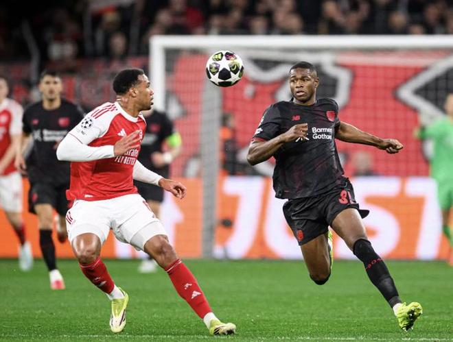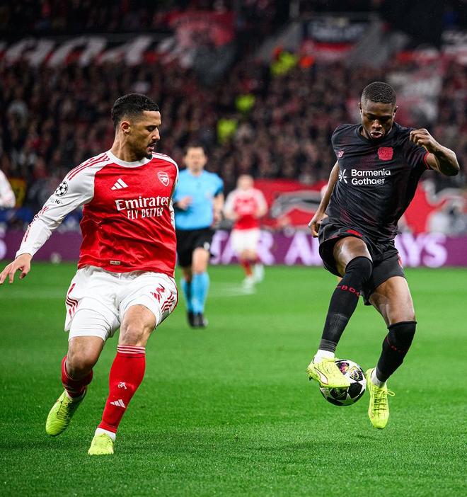 面对最近2次碰面,全部以1-4相同比分败在自己脚下的勒沃库森,阿森纳在拜耳球场沿用了4231的阵型,首发门将拉亚,廷伯、萨利巴、加布里埃尔和因卡皮耶构筑后防,苏维门迪和赖斯搭档双后腰,萨卡、埃泽和马丁内利坐镇中场,单箭头则是约克雷斯。